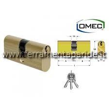 DOPPIO CILINDRO OVALE LUNGHEZZA 54 MM 140/03L OMEC ALLUMINIO A = 27 B = 27. CORPO IN ALLUMINIO, BARILOTTI IN OTTONE NICHELATO, PERNI E CONTROPERNI IN ACCIAIO INOX, MOLLE IN ACCIAIO INOX, CAMMA VERTICALE IN ACCIAIO AUTOLUBRIFICANTE. ROTAZIONE DELLA CHIAVE DI 360 GRADI. 3 CHIAVI IN OTTONE NICHELATO IN DOTAZIONE. NOTA: LE CHIAVI SONO DIPENDENTI E NON POSSONO AZIONARE IL CILINDRO SE DAL LATO OPPOSTO LA CHIAVE VIENE INSERITA E RUOTATA. CODICE CILINDRO OVALE LUNGHEZZA 54 MM OMEC IN ALLUMINIO: 140/03L
