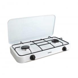 Fornello a gas 2 fuochi cucina portatile con coperchio consumo 2,2 kw bianco
