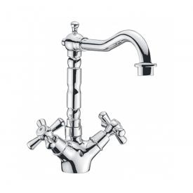 Monocom.lav.monof.canna alta bronz. croce sofiaserie sofia in ottone. miscelatore per lavello. canna...