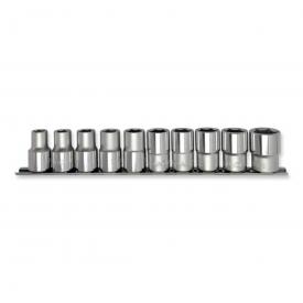 Serie di 10 chiavi a bussola poligonali da 1/2" su listello